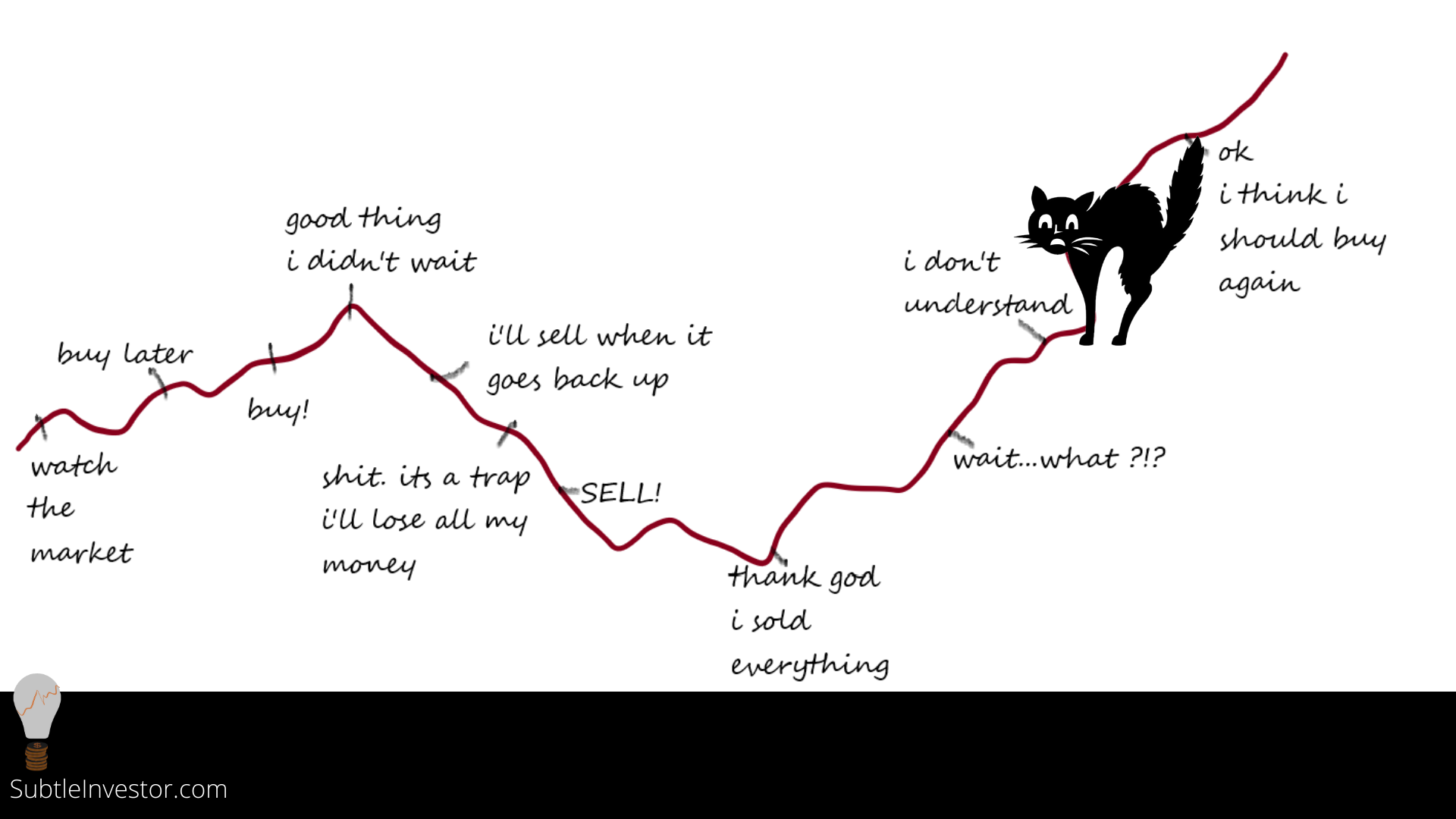 I feel we need to have a deep think about how we allow our emotions to impact our investing behaviour. Buying and selling shares have become ever so easy these days, thanks to many platforms like Trading 212*. As a result it has also become easy to turn our emotions into an action with a click of a button. In decision making, humans are bestowed with countless behavioural biases (all tucked away in our subconscious). One such example is “loss aversion bias”. In simple terms, it mean we hate to lose money. However, study on this bias is very revealing. Prospect theory was able to quantify that humans feel twice as much pain from losing the same amount compared to winning. As such, to avoid any pain of losing we are prone to behave in irrational ways. A good example would be how we react to news during market crashes and rallies. The picture below highlights this.